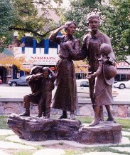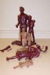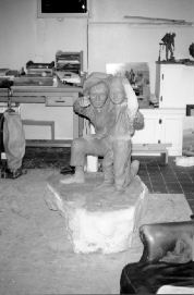 For example, the pictures on this page are of a sculpture that ultimately went to bronze. The artist sculpted an 18" tall clay model of a pioneer family. We had his foundry create a resin copy and we digitized it with a Cyberware 3030 3D Color Digitizing System. We enlarged it to 10% above lifesize. He was able to sculpt and work the polyurethane foam model and he then applied about 1/8" to 1/4" of clay onto the foam. He then put all the detail into the clay that he needed for the finished sculpture. And when he was done, he took the clay/foam master to the foundry where they made all the molds for the bronze process right from his sculpture. The foundry is Adonis Bronze in Alpine, UT.