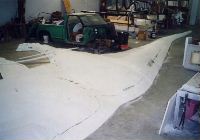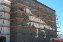 We started with two 40" relief sculptures in clay. These were digitized with a Cyberware 3030 3D Color Digitizing System, enlarged, and then computer-carved into 2# Virgin EPS foam blocks. The 4'x8' blocks were 24" thick in some places. We then delivered the blocks, along with a map of the wall, to the contractor. To give an idea of the size, notice the tail section put together on our shop floor.